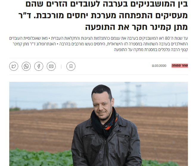 כתבה של שחר סמוחה בגלובס על עבודתו של האנתרופולוג מתן קמינר, על היחסים בין המושבניקים לעובדים התאילנדים בערבה: