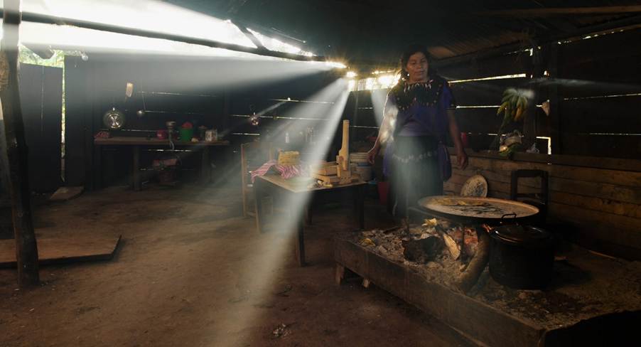 העבודה היא גיבורה דומיננטית לא פחות – לצד מטלות שונות הקשורות בעיבוד האדמה וטיפול ביבולים השונים, עבודתן של הנשים לא מסתיימת לעולם. הן מביאות מים ועצי בעירה, טוחנות תירס ומכינות טורטיות, טמאלס, ומאכלים אחרים – לעיתים להזנת בני הבית ולעיתים למכירה, הן מטפלות בבני הבית התלויים – ילדים והורים מבוגרים, הן טווות ורוקמות בדים למכירה, ודואגות לחינוך הילדים. כלומר הנשים, בניגוד לגברים, עובדות את האדמה, עובדות בבית – בטיפול במשפחה, וגם מייצרות מוצרים למכירה המספקים הכנסה נוספת.