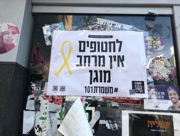 מחקרנו נפרש על פני שש שנים, אך בשנתיים האחרונות הואצו תהליכי ההשתנות של הנוף הפיזי והסימבולי של הרחוב ולבשו פנים חדשות מדי יום. תיעדנו מקרוב את המאבק הסימבולי שהתפתח ברחוב, על המופעים השונים של המחאה נגד המלחמה ובעד שחרור החטופים, לצד גילויי התמיכה בהמשך המלחמה. בין אלה בלטו במיוחד מאהל משפחות החטופים בצומת הרחובות עזה ובלפור, לצד ביטויים יומיומיים המנכיחים במרחב זה את החטופים, וכן את המלחמה בעזה והאימה הכרוכה בה ('תינוק בעזה'). כפי שעלה מראיונות עם דיירי הרחוב, בעלי עסקים ועוברי אורח, מהרשמים של הסטונדטים והקולגות שסיירו איתנו ברחוב, ומדיונים ערים ברשתות החברתיות, לראשונה הפך הקשר בין שם הרחוב (המסמן) לבין המרחב של רצועת עזה (המסומן) לנוכח ברחוב באופן יומיומי, ישיר ובלתי ניתן להדחקה.