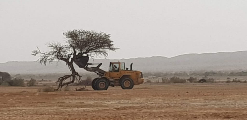 אחד האזורים שבו מתקיימים כיום מאבקים על גבולות דרך עצים הוא הנגב. חוקרים כדוגמת גדי אלגזי, יואב גאלי ואחרים מראים כיצד העצים בפרט, והטבע באופן כללי, משמשים ככלים במאבקי הבדואים מול המדינה, קק"ל (וארגוני סביבה אחרים). דוגמה לכך הם מחקריה של האנתרופולוגית וחוקרת הסביבה אמילי מקיי (Emily McKee) מאוניברסיטת צפון אלינוי, שספרה Dwelling in Conflict פורסם ב-2015 ומתאר באופן אתנוגרפי ומורכב את סכסוך הקרקעות בנגב בין היהודים לבדואים. במאמר Performing Rootedness in the Negev/Naqab מ-2013 מתארת מקיי כיצד התפתח המאבק והסמליות של העצים אצל התושבים היהודים והבדואים בנגב: קק"ל נוטעת עצים ומכריזה עליהם כ"יער" באדמות שעליהן מתנהלים מאבקי בעלות משפטיים ופוליטיים בין הבדואים למדינה, ובמקביל נעקרים העצים שנוטעים הבדואים על מה שהם מחשיבים כאדמתם. מקיי מתארת את סכסוך האדמות והבעלות בנגב, מנתחת את הפרקטיקות והשיחים הסובבים אותם, ומצביעה על עלייתו נרטיב סביבתי אלטרנטיבי לנרטיב הקיים המאתגר הן את התנועה הסביבתית בישראל והן את המאבק הלאומי על האדמות והמרחב בדרום הארץ.
